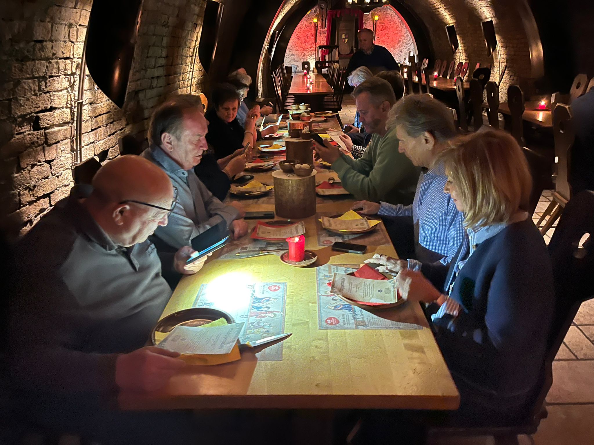 Nach dem traditionellen Händewaschen am mittelalterlichen Brunnen führte man uns in den stimmungsvollen Gewölbekeller, wo die Tafel bereits festlich gedeckt war. Dann begann das Spektakel.